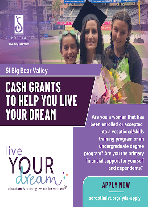 For more information about our local and global work, please visit our About Us page. If you'd like to find out how to become a member or donor to Soroptimist International of Big Bear Valley, email our Membership Director at soroptimistbbl@gmail.com.